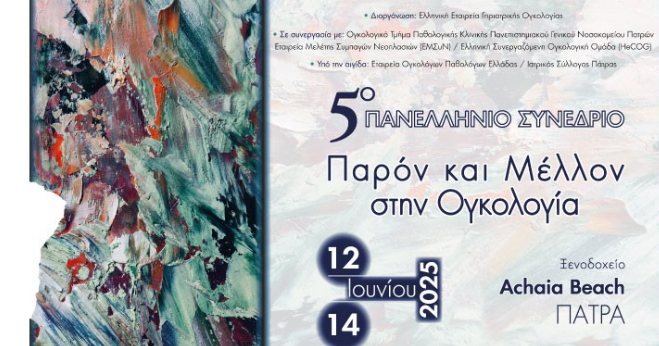 Με ιδιαίτερη χαρά σας προσκαλούμε στο 5ο Πανελλήνιο Συνέδριο «Παρόν και Μέλλον στην Ογκολογία», το οποίο θα πραγματοποιηθεί από τις 12 έως και τις 14 Ιουνίου 2025 στο ξενοδοχείο Achaia Beach στην Πάτρα.