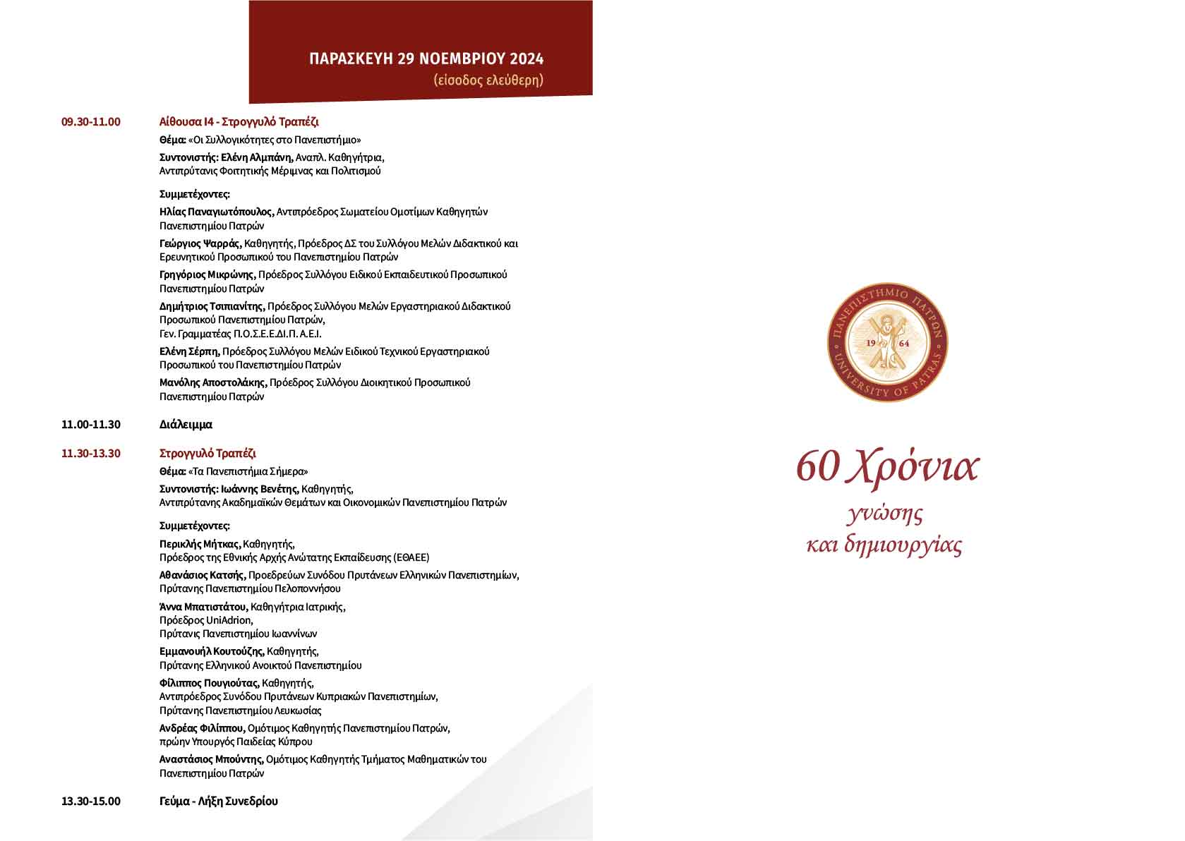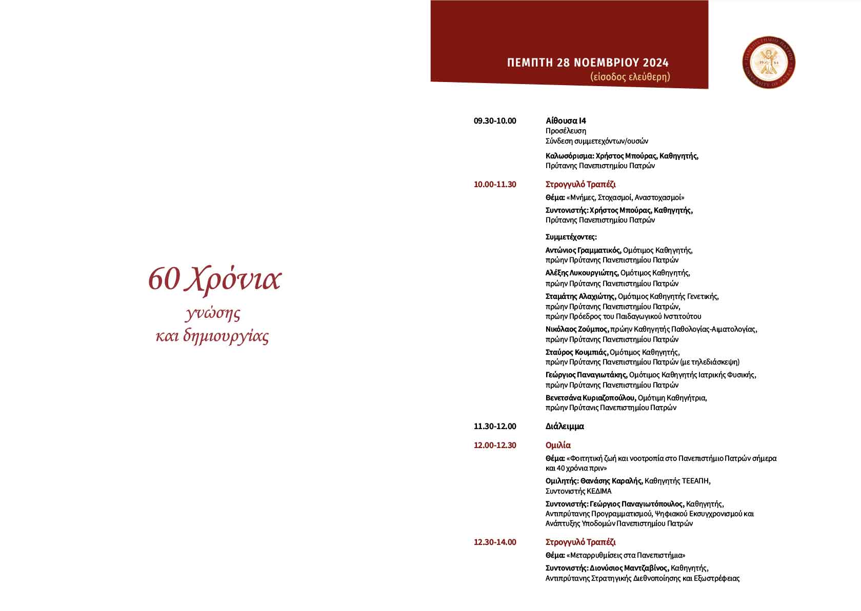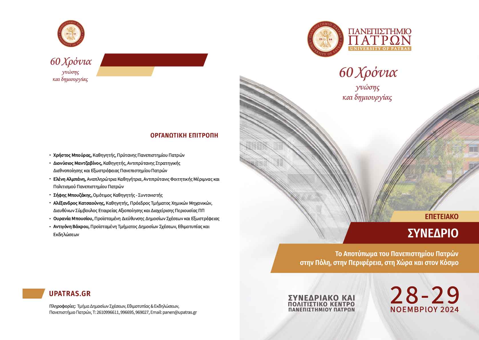 60 Χρόνια Πανεπιστήμιο Πατρών, Επετειακό Συνέδριο 28-29 Νοεμβρίου 2024