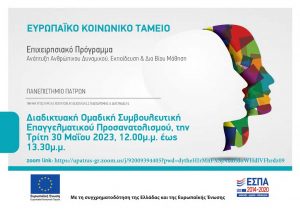 Διαδικτυακή Ομαδική Συμβουλευτική Επαγγελματικού Προσανατολισμού, την Τρίτη 30 Μαΐου 2023, 12.00μ.μ. έως 13.30μ.μ.