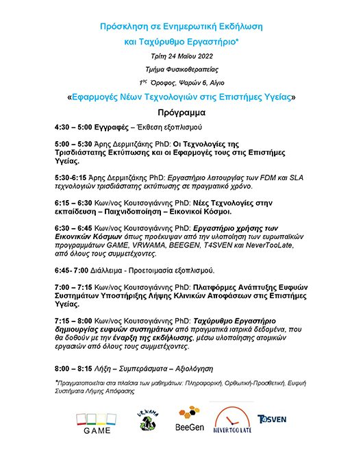 ευρωπαϊκών προγραμμάτων GAME, VRWAMA, BEEGEN,T4SVEN και NeverTooLate, από όλους τους συμμετέχοντες.