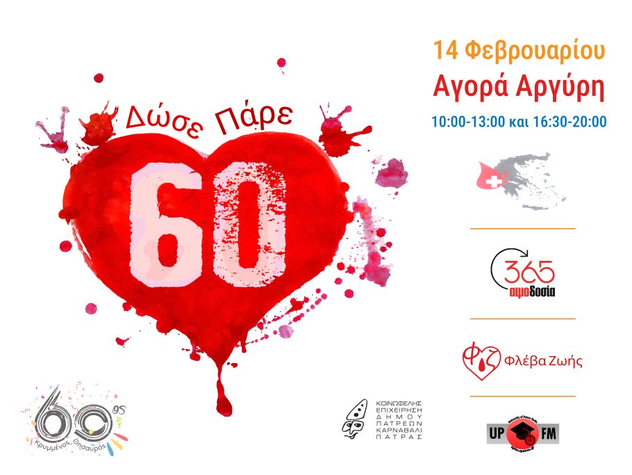 Την ημέρα του Αγίου Βαλεντίνου δείχνουμε την αγάπη μας σε αυτούς που το έχουν ανάγκη δωρίζοντας το αίμα μας και το γιορτάζουμε μέσα στο εορταστικό κλίμα του καρναβαλιού!