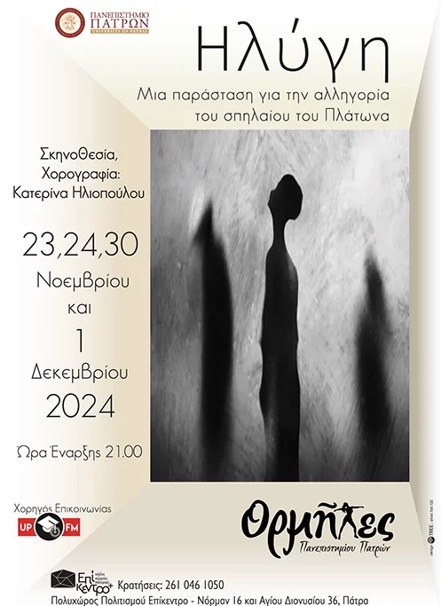 Μια περφόρμανς βασισμένη στην αλληγορία του σπηλαίου του Πλάτωνα. Ο άνθρωπος λαμβάνει τη θέα της ἠλύγης (σκιάς) ως κάτι αληθινό. Η κατασκευασμένη πραγματικότητα, η αφύπνιση, η αναζήτηση της αλήθειας και η ανακάλυψη της γνώσης.
