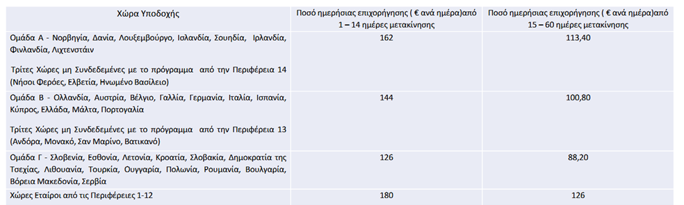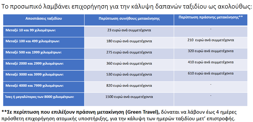 Ακολουθούν οι πίνακες κάλυψης δαπανών ταξιδίου (Πίνακας 1) και δαπανών διαβίωσης (Πίνακας 2)