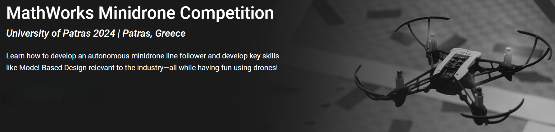 Η Ομάδα Ρομποτικής (Open Robotics Group), του Τμ. Μηχανολόγων & Αεροναυπηγών Μηχανικών, του Πανεπιστημίου Πατρών, σε συνεργασία με την MathWorks, διοργανώνουν για πρώτη φορά στην Ελλάδα τον Mathworks Minidrone Competition με συμμετοχές φοιτητών από όλα τα ελληνικά πανεπιστήμια.