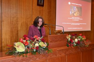 Η Αναπληρώτρια Καθηγήτρια του Τμήματος, κα Νίκη Γεωργιάδου, παρουσίασε το πολυσχιδές έργο του τιμώμενου και την ακαδημαϊκή του πορεία, ενώ ακολούθησε η ανάγνωση του ψηφίσματος και του τίτλου του Επίτιμου Διδάκτορα από τον Πρύτανη.
