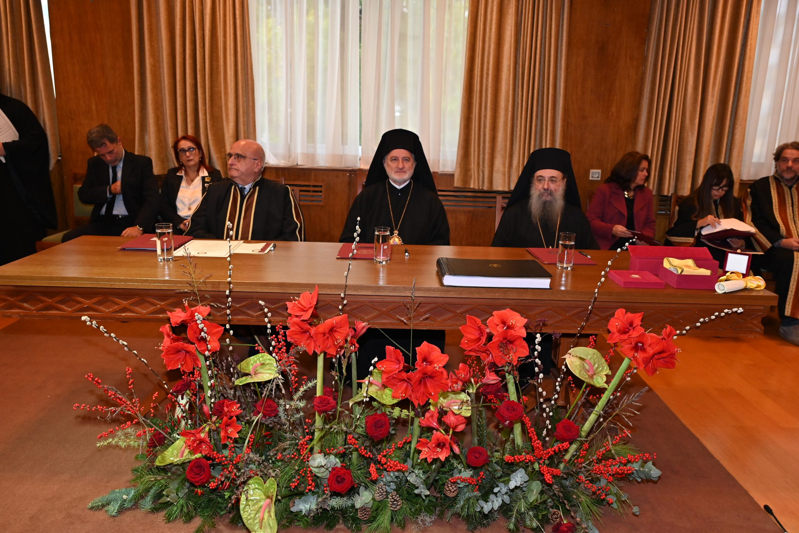Στη συνέχεια, απηύθυναν χαιρετισμό ο Κοσμήτορας της Σχολής Οικονομικών Επιστημών και Διοίκησης Επιχειρήσεων, Καθηγητής Κωνσταντίνος Κουνετάς, καθώς και η Πρόεδρος του Τμήματος Διοικητικής Επιστήμης και Τεχνολογίας, Καθηγήτρια Ήρα Αντωνοπούλου. Και οι δύο ομιλητές ανέδειξαν τη συμβολή του Αρχιεπισκόπου στην προώθηση της παιδείας και στην προαγωγή του διαπολιτισμικού διαλόγου.