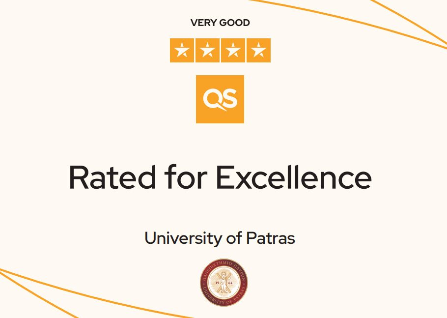 Το Πανεπιστήμιο Πατρών είναι στην ευχάριστη θέση να ανακοινώσει ότι κατόπιν συμμετοχής του στο πρόγραμμα QS Stars της εταιρείας QS Quacquarelli Symonds Ltd, γνωστής για το QS Rakings (Top Universities), έλαβε τη διάκριση των τεσσάρων αστέρων στα πέντε. Με αυτή τη διάκριση το Πανεπιστήμιο Πατρών, το πρώτο ίδρυμα στην χώρα που αξιολογείται από διεθνή οίκο εγνωσμένης αξίας, αποδεικνύει άλλη μια φορά ότι αποτελεί έναν υψηλής ποιότητας εκπαιδευτικό και ερευνητικό πυλώνα για την χώρα μας.
