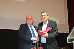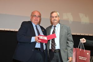 Τους χαιρετισμούς ολοκλήρωσε ο κ. Σ. Μπουζάκης, Ομότιμος Καθηγητής του Πανεπιστημίου Πατρών ο οποίος αναφέρθηκε στην ιστορία των 60 χρόνων μέσω της Γ’ έκδοσης του Λευκώματος για το Ίδρυμα, του οποίου είναι συγγραφέας, επισημαίνοντας τα εξής: «(…) Το Λεύκωμα είναι το δικό μου αντίδωρο στο Πανεπιστήμιο που για τρεις δεκαετίες υπηρέτησα με αφοσίωση, το αγάπησα με αγάπησε, του δόθηκα. Σε δέκα χρόνια ελπίζω και εύχομαι στην ίδια αίθουσα να εορταστούν τα 70 χρόνια του Πανεπιστημίου μας (…).»