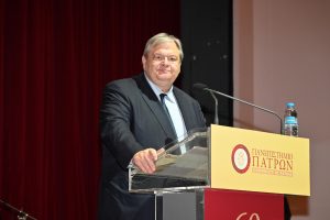Στη συνέχεια χαιρετισμό απηύθυνε ο κ. Ν. Παπαϊωάννου, Εκπρόσωπος του Προέδρου της Ελληνικής Κυβέρνησης και Γενικός Γραμματέας Ανώτατης Εκπαίδευσης, ο οποίος μεταξύ όλων όσων ανέφερε υπογράμμισε τα εξής «(…)Το έργο που παράγεται στους κόλπους του Πανεπιστημίου Πατρών είναι αναγνωρισμένο από τη διεθνή επιστημονική κοινότητα όπως καταδεικνύουν οι θέσεις που καταλαμβάνει στις διεθνείς κατατάξεις. Κύριοι συντελεστές της αξιόλογης πορείας του Πανεπιστημίου, είναι η οικογένειά του, το ακαδημαϊκό και διοικητικό προσωπικό που καταβάλει τα μέγιστα σε μία εποχή γεμάτη προκλήσεις (…).»