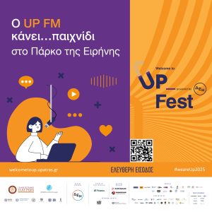 Ο ραδιοφωνικός σταθμός UP FM του Πανεπιστημίου Πατρών συμμετέχει δυναμικά στο Φεστιβάλ Υποδοχής Πρωτοετών Φοιτητών Welcome to UP 2025 powered by ΔΕΗ, με ένα ξεχωριστό και ζωντανό ραδιοφωνικό πρόγραμμα που θα εκπέμπει απευθείας από το Πάρκο της Ειρήνης, στην καρδιά της Πανεπιστημιούπολης.